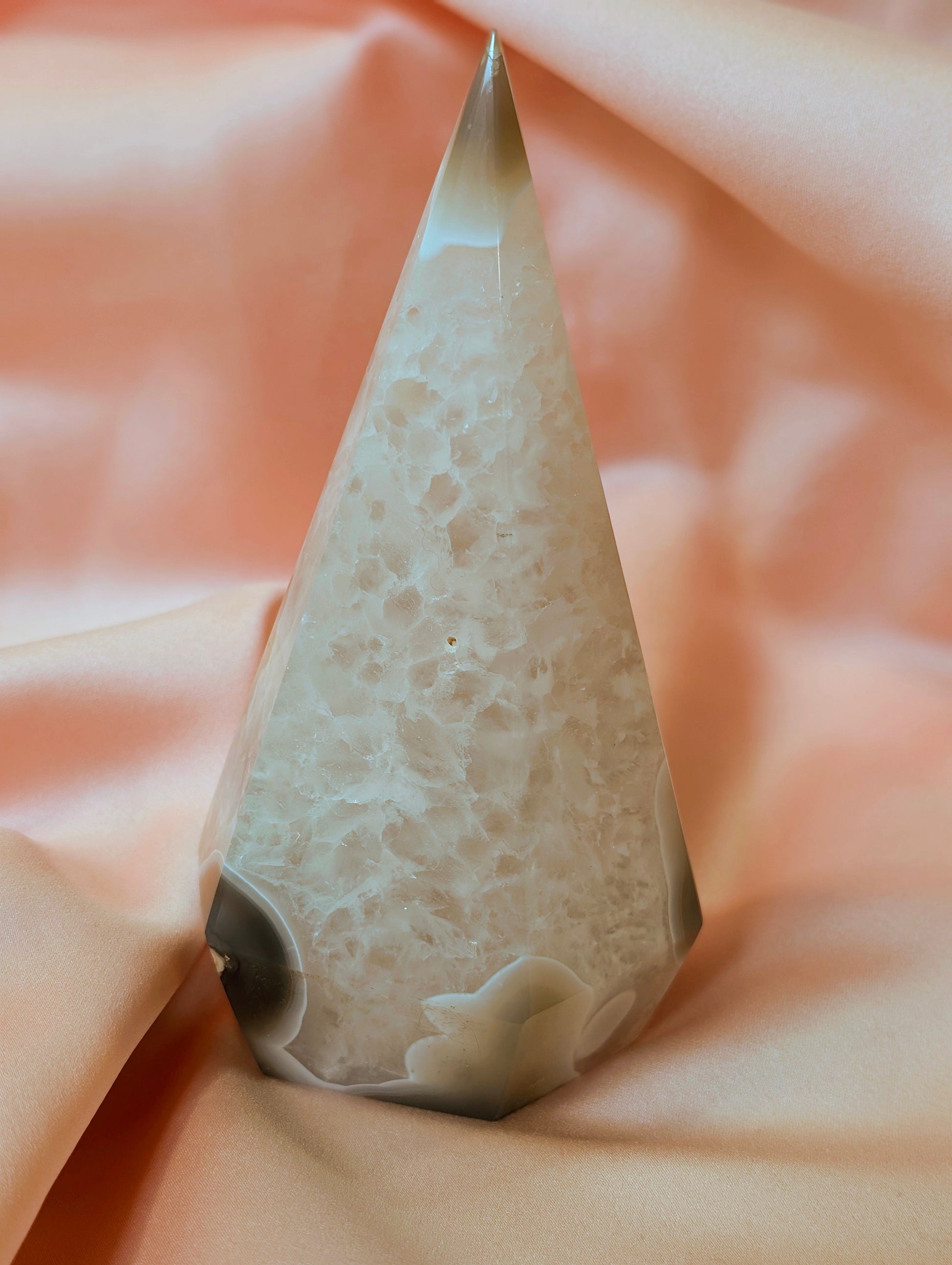 One of a kind polished Agate Tower, carved from genuine agate and featuring unique natural banding.