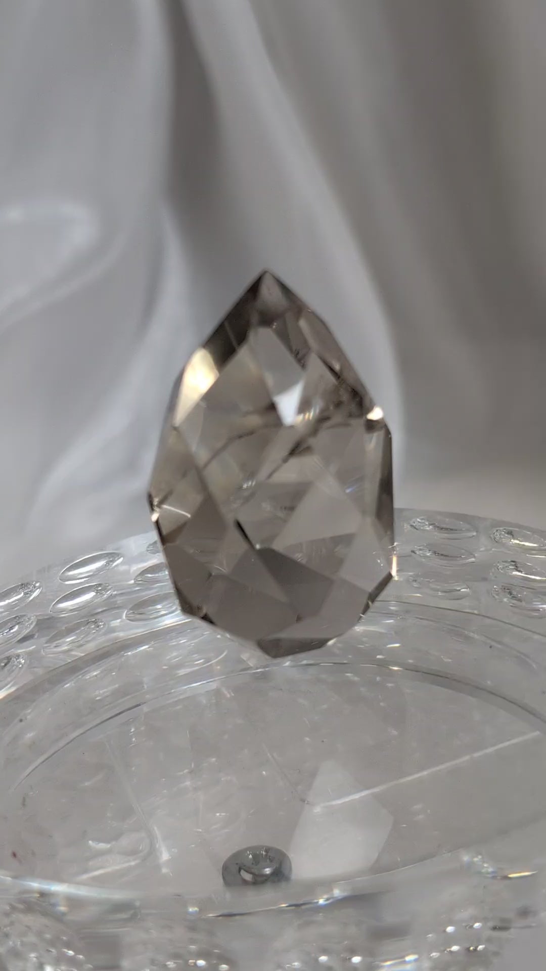 Crafted from high-quality smokey lemurian citrine, this sculpture features precise diamond-style faceting that creates exceptional sparkle and depth from every angle.