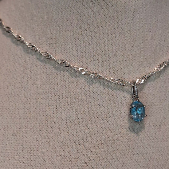 Adorn yourself with this luminous blue topaz pendant on a polished 19" silver chain. Topaz has been associated with tranquility, truth & higher awareness. It is believed to calm the mind and inspire clear communication. A serene, elegant pendant for everyday wear.